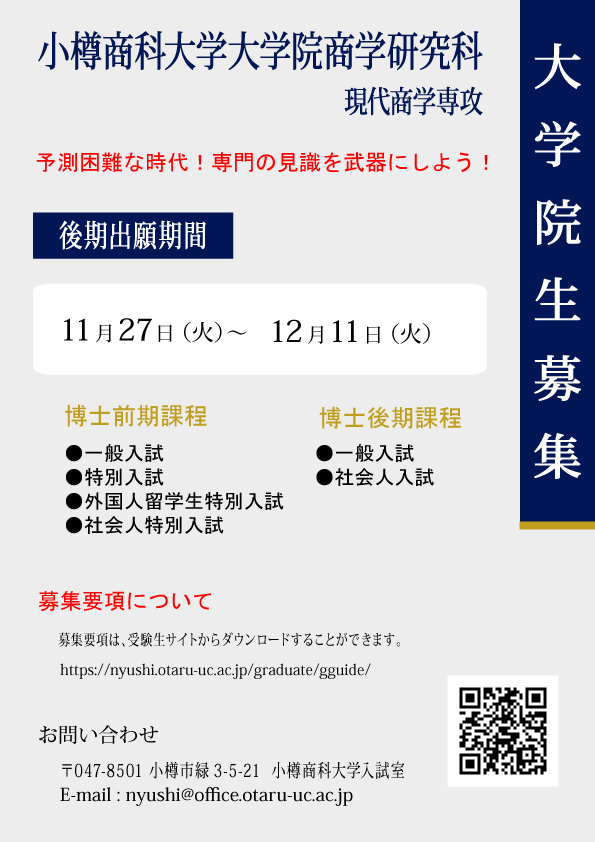 今日は,大学院商学研究科現代商学専攻の出願受付開始のお知らせだよ。