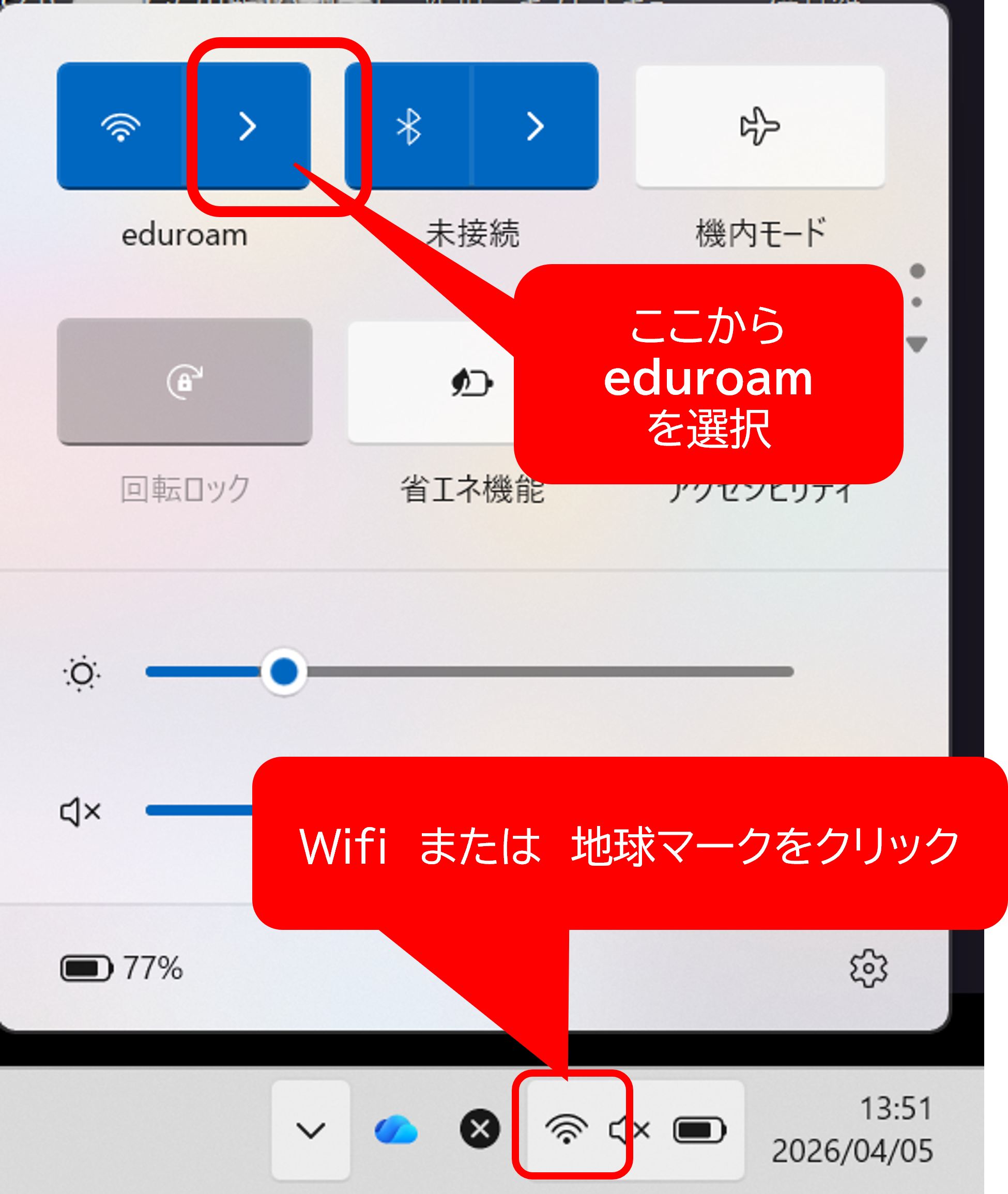 | 学内無料Wi-Fi(無線LAN)は「eduroam」をご利用ください。 | |
