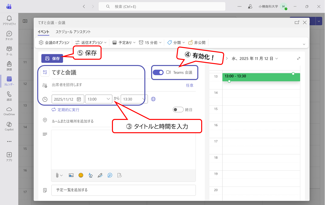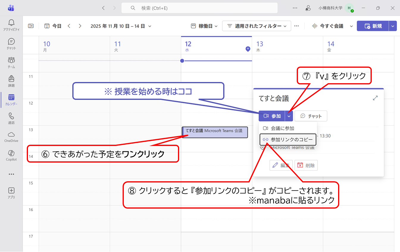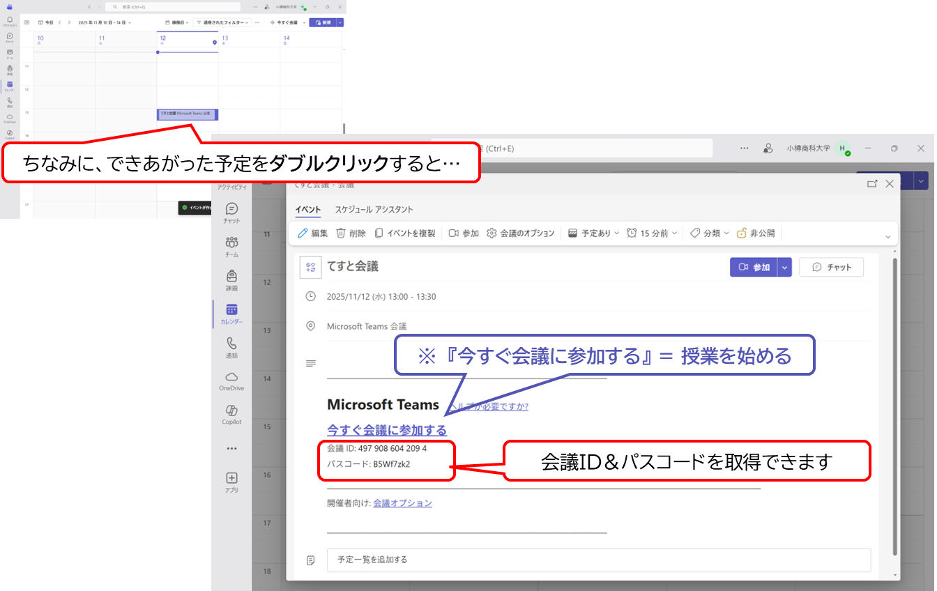 Microsoft Teamsによる会議・授業の開始方法会議IDとパスコードで参加する方法もあります。