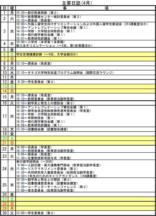 | 主要日誌 平成25年4月主要日誌 |