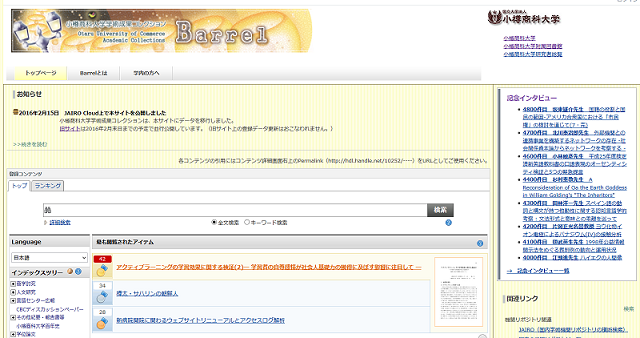 小樽商科大学学術成果コレクション(Barrel) がリニューアルしたよ!!