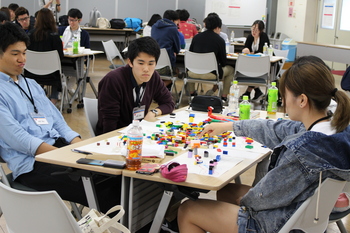 1日目の研修「“ジブン”再発見」に続き、レゴブロックを用いた研修。
