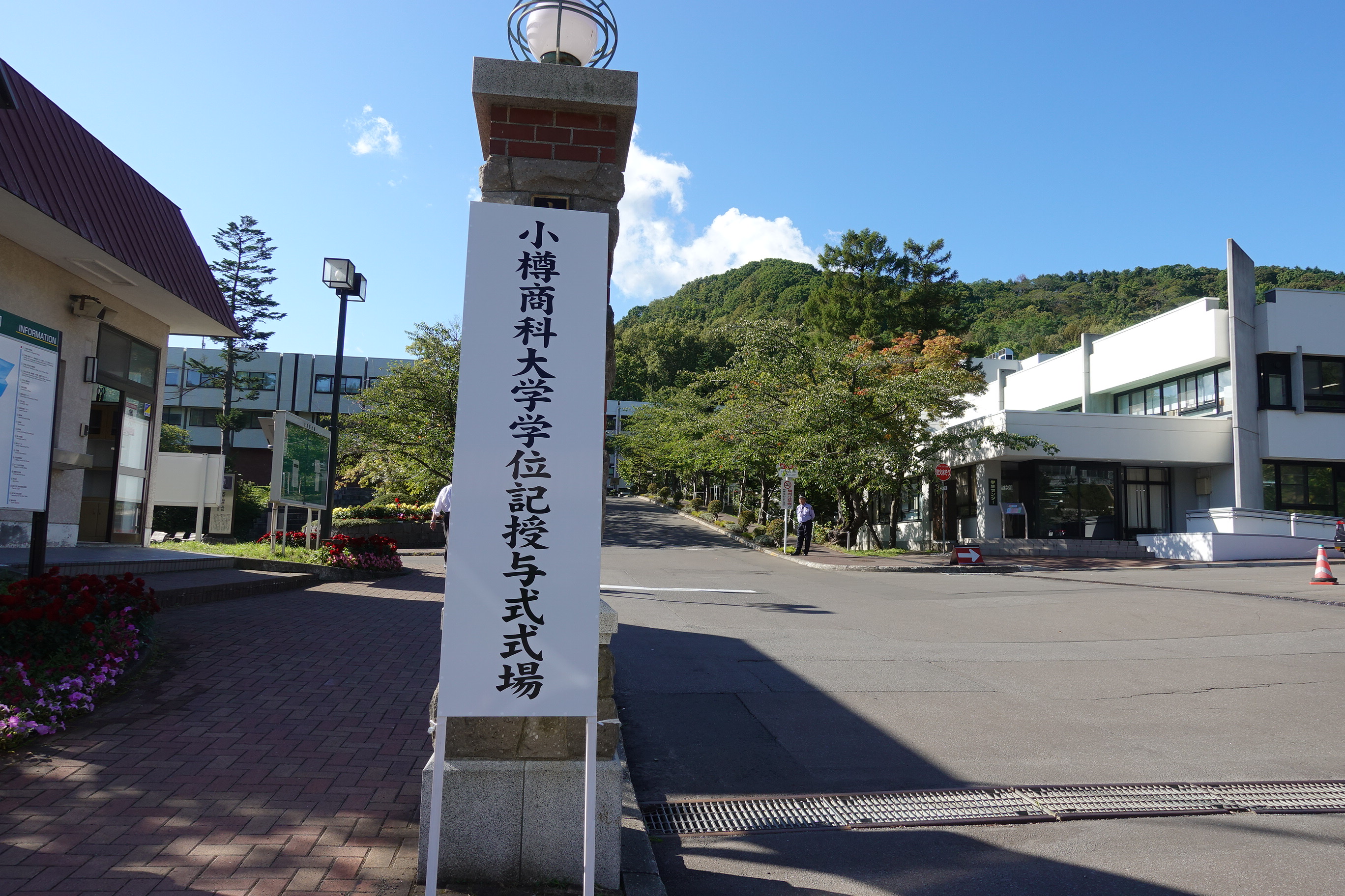 今日は、9月卒業の学位記授与式の報告だよ! 今年度は、学部生7名が9月に商大を卒業したよ。(大学院生の修了生は